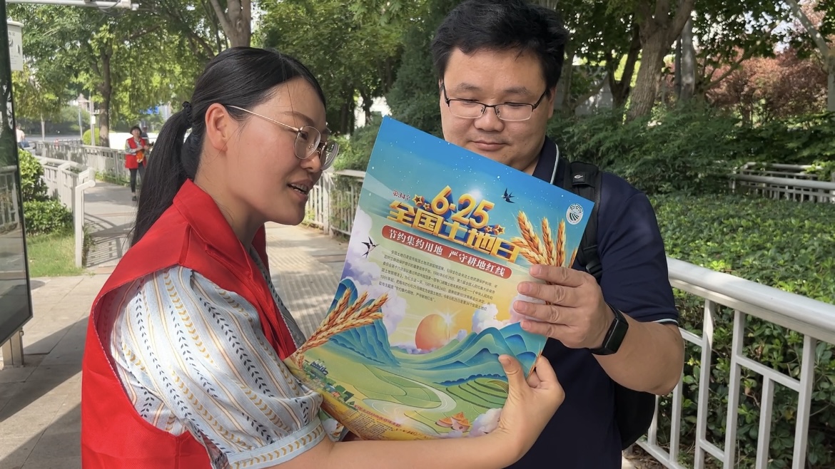 河南省自然资源厅志愿者:“今天是第34个全国土地日,节约集约用地、严守耕地红线,是咱们国家近5年关于土地这方面的一个口号,还有相关的法律宣传知识请您了解下。”